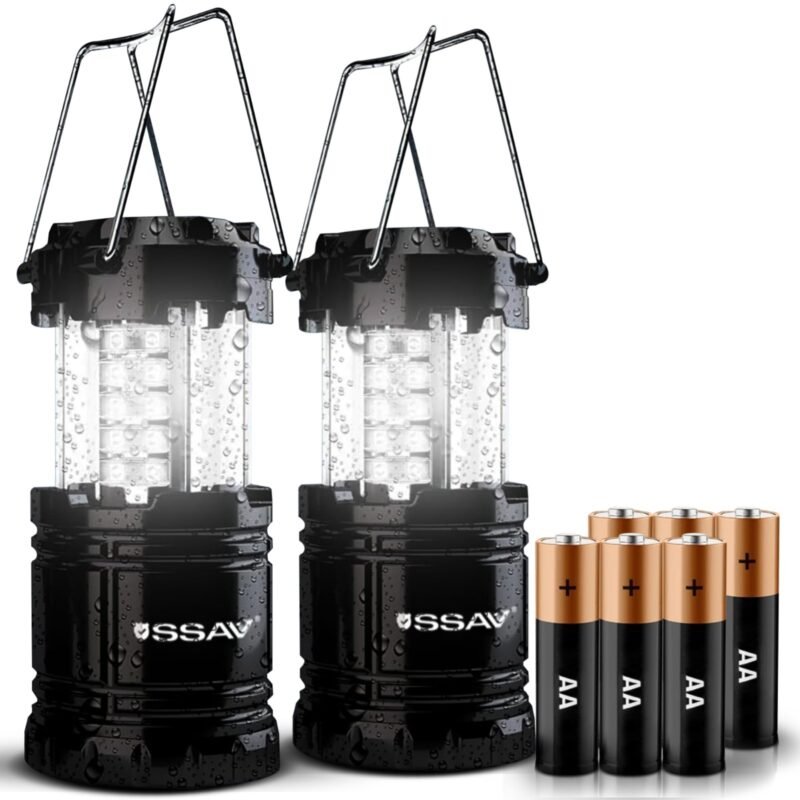 SSAV Collapsible LED Camping Lantern – 30 LEDs, 360° Light, IP44 Water Resistant (Black, 2 Pack)