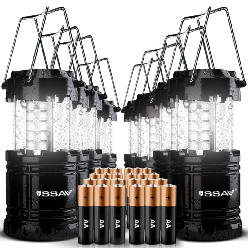 SSAV Collapsible LED Camping Lantern – 30 LEDs, 360° Light, IP44 Water Resistant (Black, 8 Pack)
