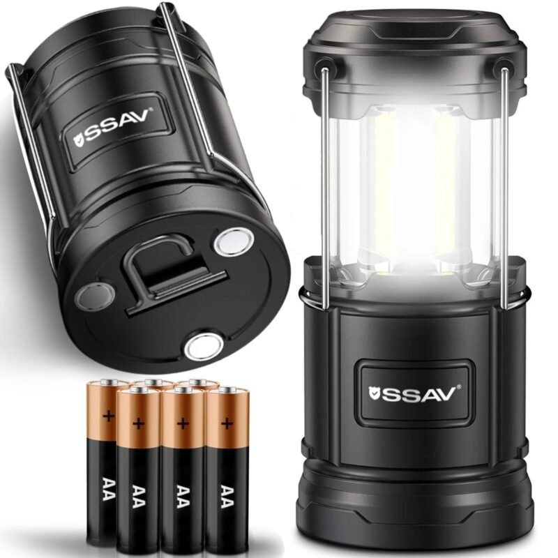 SSAV LED Camping Lantern with Magnetic Base – 360° Bright Light, IP44 Water Resistant (Black, 2 Pack)