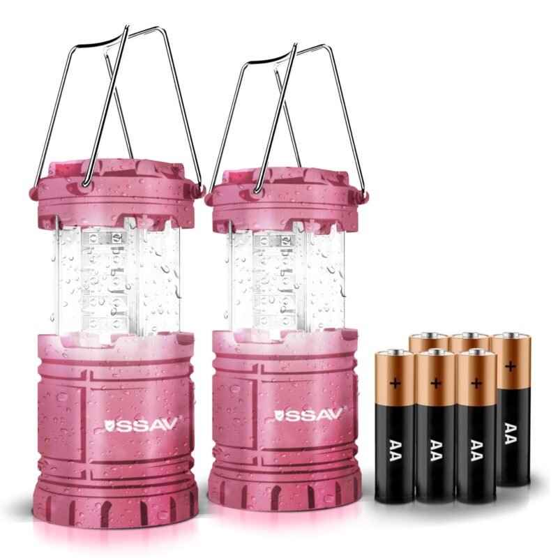SSAV Collapsible LED Camping Lantern – 30 LEDs, 360° Light, IP44 Water Resistant (Pink, 2 Pack)