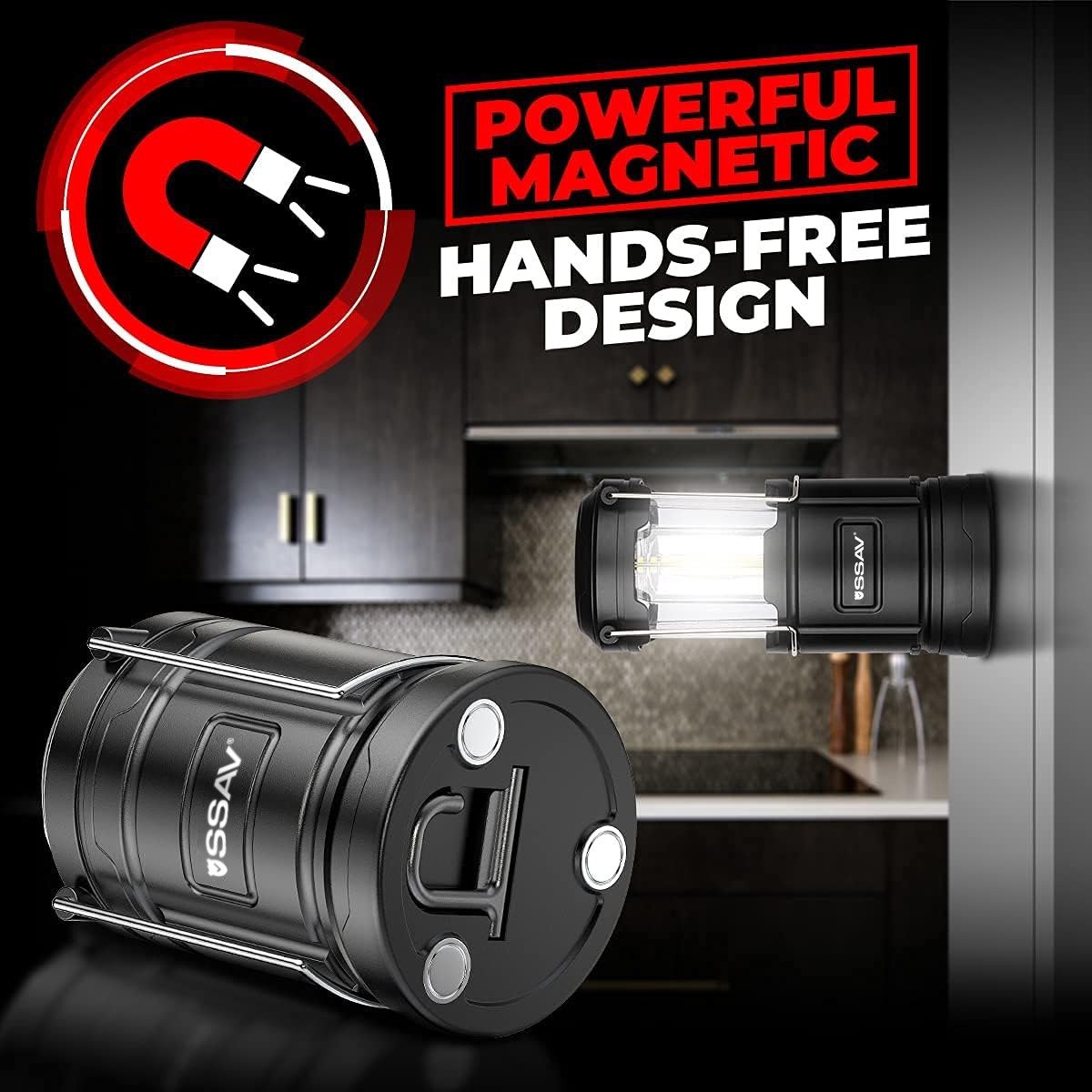 The SSAV Magnetic Base LED Camping Lantern is designed for situations where stable, hands-free lighting is essential. The built-in magnetic base allows secure attachment to metal surfaces such as vehicles, toolboxes, and garage panels.