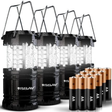 SSAV Collapsible LED Camping Lantern – 30 LEDs, 360° Light, IP44 Water Resistant (Black, 4 Pack)