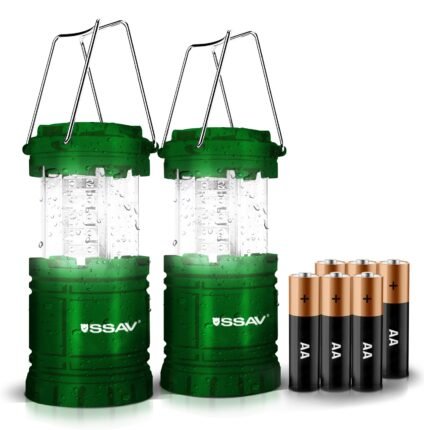 SSAV Collapsible LED Camping Lantern – 30 LEDs, 360° Light, IP44 Water Resistant (Green, 2 Pack)